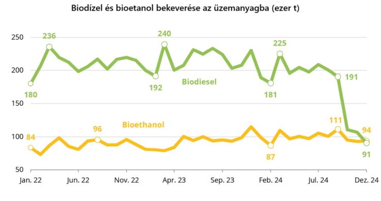 Az üvegházhatású gázok kibocsátásának csökkentésére tett német vállalások és a bioüzemanyag-gyártásban duplán elszámolható hulladékolajok és -zsírok meghozták az eredményt: bezuhant a repcéből készülő, ún. elsőgenerációs biodízel felhasználása. Már nem éri meg a gyártóknak olyan alapanyagokat választani, amelyekből élelmiszer készül, és nem az élelmiszergyártás melléktermékei/hulladékai. Így 2024 decemberében a biodízel üzemanyagokba kevert mennyisége 91 ezer tonna alá zuhant, ezzel először került a német földön szűkösen rendelkezésre álló bioetanol alá. (A folyamatban a repce megugró ára is közrejátszott.)