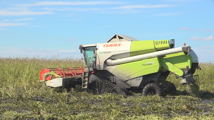 Az árasztásos területen, a sekély vízben haladva a betakarítást féllánctalpas kombájnok végzik, gabonavágó adapterrel. Az aratás után a termést azonnal a feldolgozóüzembe szállítják. – Az aratást kivéve az indián rizs termesztésének szinte minden művelete repülőgépről zajlik: a szórva vetéstől kezdve a növényvédelemig és a tápanyag-utánpótlásig – magyarázta Keserű Árpád. A vetés április végétől május végéig tart, a magokat víz alatt, két fokon hűtve tárolják a csírázásig. A tenyészidő általában 120 nap, de a vetést szakaszosan végzik, hogy a feldolgozói kapacitáshoz igazodjon. A növény érettségét a bugák barnulása és a portokok lehullása jelzi. Az aratás 35% körüli nedvességtartalom mellett indul, mert a termés könnyen pereg, így gyors feldolgozást igényel.