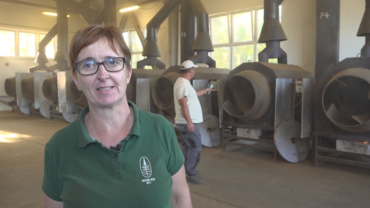 A learatott terményt pótkocsikkal a feldolgozó udvarára szállítják. Itt halmokba terítik és több napig forgatják a magokat. – Amikor learatjuk az indián rizst, először a füllesztőtérbe kerül. Néhány napig komposztáló berendezéssel keverjük, vizezzük, hogy az illat- és ízanyagok összeérjenek. Ez a homogenizálás alapfeltétele az egyenletes minőségnek – mutatta be a folyamatot Kittlinger Dóra, a cég ügyvezetője.