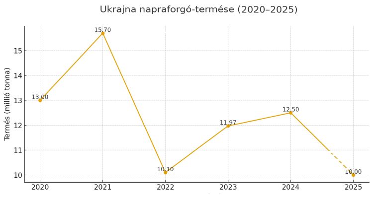 A szeptember végétől kezdődő tartós esőzés Ukrajna nyugati és északi régióiban megállította a betakarítást, és rontotta a termés minőségét. Október 2-ig az ukrán napraforgóterület alig 60%-át takarították be, amiről 1,83 t/ha átlaghozammal 5,5 millió tonna termést arattak. Ez azt jelenti, hogy a 11 millió tonnát is nehezen fogja elérni az össztermés. Tavaly ugyanekkor 8 millió tonna (79%) volt a mérleg 2 t/ha átlaghozam mellett.